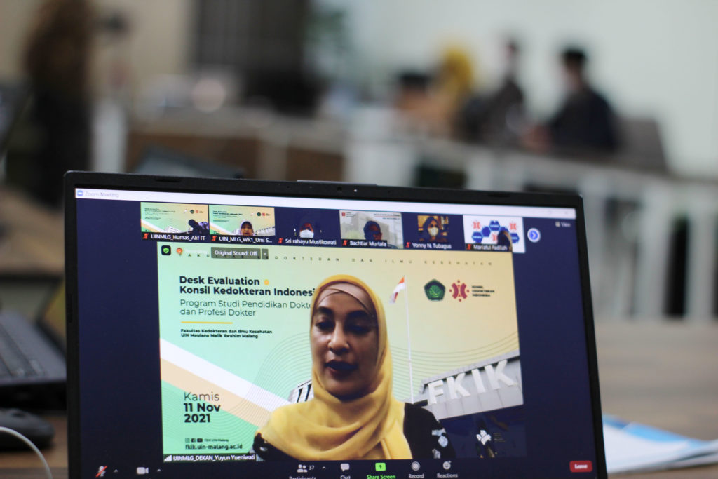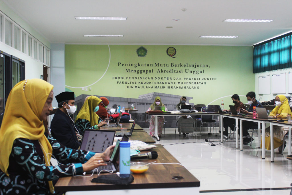 Sebagai tindak lanjut dari kegiatan monitoring dan visitasi Konsil Kedokteran Indonesia (KKI) yang lalu (13/09/2021), pada hari ini Kamis (11/11/2021), Program Studi Pendidikan Dokter Fakultas Kedokteran dan Ilmu Kesehatan (PSPD FKIK UIN Malang) bersama Konsil Kedokteran Indonesia (KKI) menyelenggarakan desk evaluation. Kegiatan ini berlangsung di Ruang Akreditasi lantai 1 Gedung Ibnu Thufail Kampus 3 FKIK UIN Maulana Malik Ibrahim Malang.