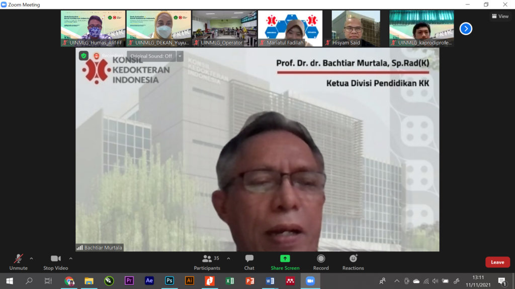 Ketua Divisi Pendidikan KK, Prof. Bachtiar menjelaskan bahwa Desk Evaluation yang diselenggarakan pada hari ini merupakan suatu bentuk keterbukaan KKI utamanya dalam memfasilitasi para calon dokter lulusan FKIK UIN Malang agar nantinya dapat memberikan pelayanan yang prima bagi masyarakat. “Meskipun kami menyadari bahwa PSPD FKIK UIN Malang ini telah lama berdiri, yakni sejak 2016, KKI bertanggungjawab untuk menjalankan amanat undang-undang praktik kedokteran yakni melakukan registrasi dan pembinaan dalam meningkatkan mutu pelayanan medis”, terang Prof. Bachtiar.